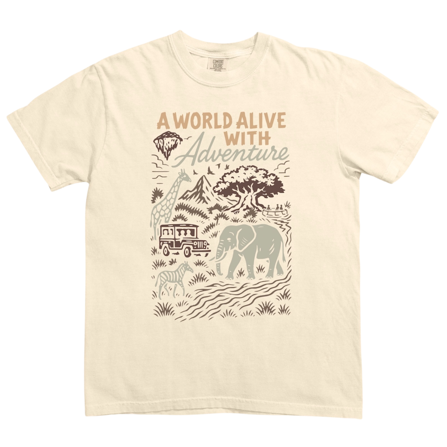 Bring the wonders of the animal kingdom to your wardrobe. Our Alive With Adventure tee features a nostalgic safari scene drawing on tying every element of the park together into one incredible scene. From floating mountains to African safaris, this tee is the perfect park for!